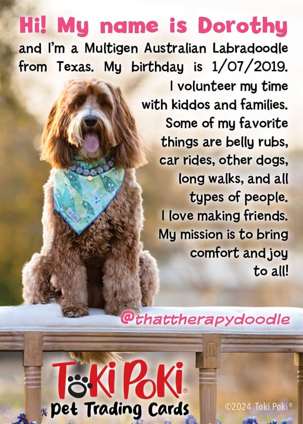 Celebrate the season with a Toki Poki® Spring-themed pet trading card. Each card is professionally designed with the front showcasing your favorite spring photo of your pet, while the back reveals another image and a short bio sharing their story, favorite things, and lovable quirks.